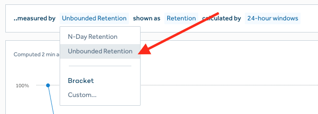 On the case of a high-frequency product, the N-Day retention is often a better choice. However, if your product is low-frequency, you can use an Unbounded Retention for more visibility.